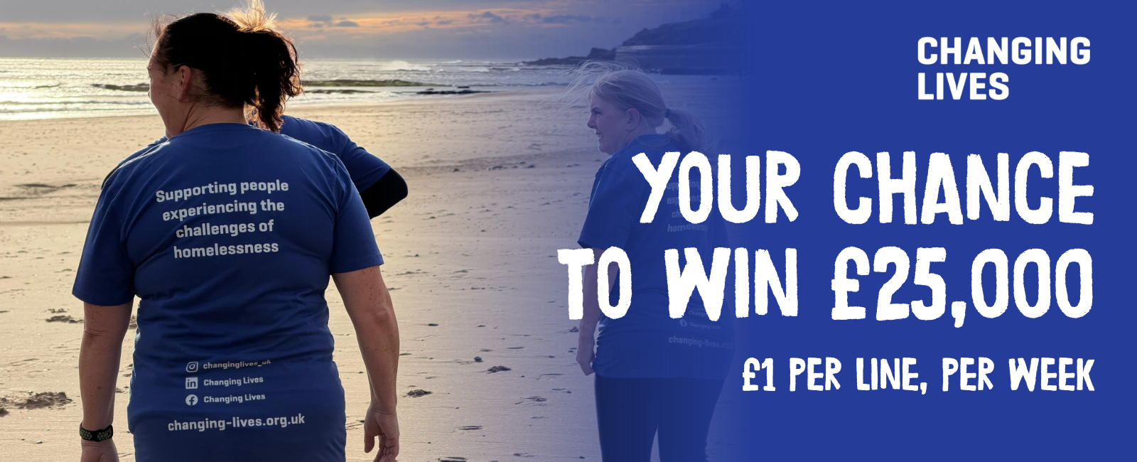 The promoter of this Changing Lives Lottery is Changing Lives, H26 The Avenues, 11th Avenue North, Team Valley, Gateshead, NE11 0NJ. Registered Charity Number 500640 (England & Wales).